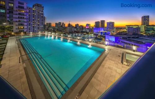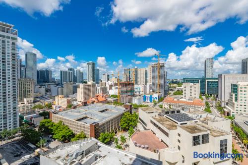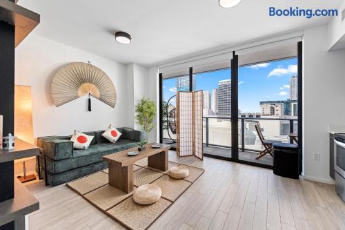 Welcome to your urban oasis in the heart of Miami! Our Japanese Influenced Studio is in the heart of downtown Miami. Easy access to the beach, stadium, cruise ships and nightlife. King bed and king pullout sofa allows 4 guests to stay comfortably, with incredible city views.