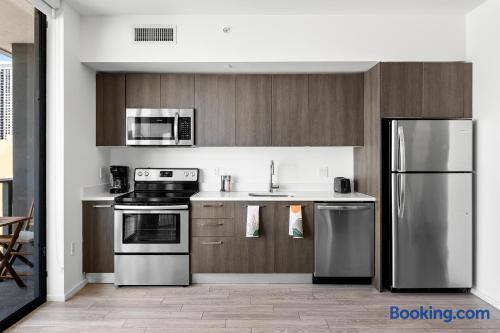 Welcome to your urban oasis in the heart of downtown Miami! Inspired by Modern Capetown Design, the apartment is nestled on Biscayne Blvd in a premium high-rise featuring an expansive pool, lounge, game room, co-working space, and restaurants directly across from the Miami Heat Arena. This prime location on Biscayne Blvd puts you in the center of the action. Explore the eclectic mix of restaurants, bars, and cultural hotspots that define downtown Miami. The expansive apartment is located on one of the top floors of a luxury condo in heart of Biscayne Bay, Downtown Miami. Balcony, Ocean and Brickell view, Washer and Dryer, Pool Deck , BBQ grill , Picnic patios , Gym, Flat Screen TV and more! All the amenities you could want Pool View , Hot tub , Work spaces and Outdoor and indoor patio dining areas as well as a Five Star restaurant and lounge on the entry floor. We've spent the last 5 years traveling the world and staying in incredible homes from South Africa to Turkey. Now that we are settled in Miami, Airbnb gives us the opportunity to return the favor to fellow travelers and those alike. We look forward to providing you an unforgettable experience at your new home. I hope what has inspired us, inspires you.